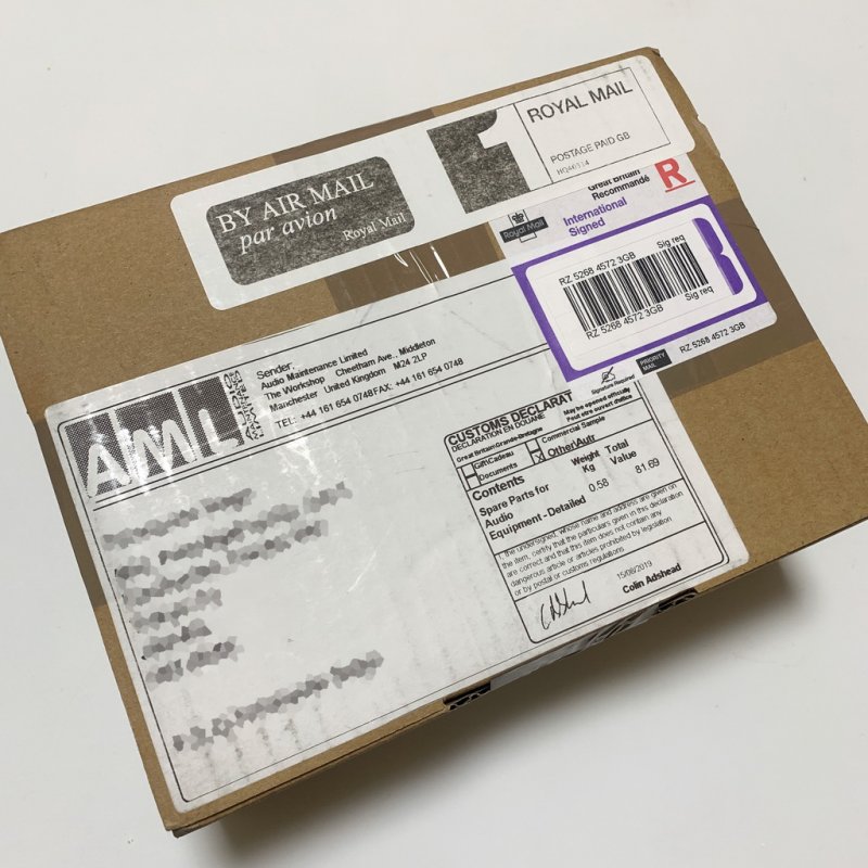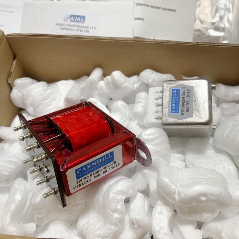 2019年8月。英国のAudio Maintenance Ltdからお取り寄せしました。MKIIIにはHPF用のインダクターが無いのでインプットトランス(CA-18-VTB9045M)とアウトプットトランス(CA-18-VTB1148)を交換します。また、MKIIIはMICとLINEのインプットが兼用で1入力のみになっているのでインプットトランスも1個だけ交換します。