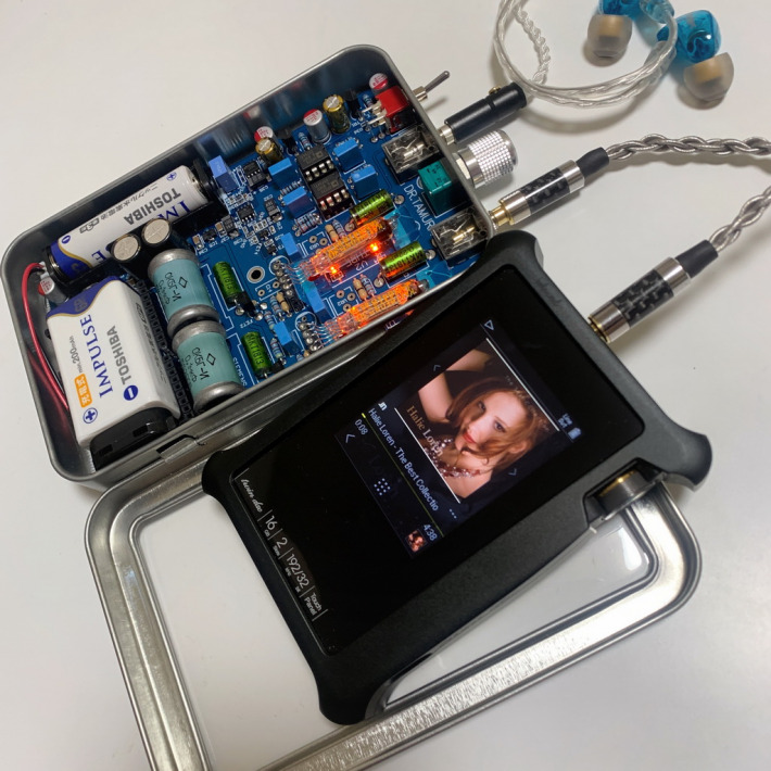 ヘッドフォンだけでなく、アンプ通さないと鳴らしにくいイヤホン(AROMA Musical Box Star)とかにもいい感じです!(ソニーの新モニターヘッドフォンのインピーダンスは24Ω(1kHz)でこちらの1BAイヤホンは70Ω(1kHz)です。)