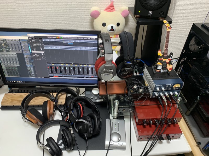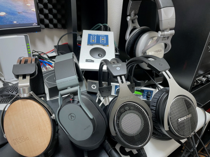 私は元々イヤホン派で、一歩家を出たらずっとイヤホン着けていられますが、ヘッドフォンで長時間音楽を聴く事には慣れていないのでメインのモニターは、スピーカーです。モニター系のヘッドフォンは音楽制作で音を探すために使いますが、長く聴いていると疲れます。