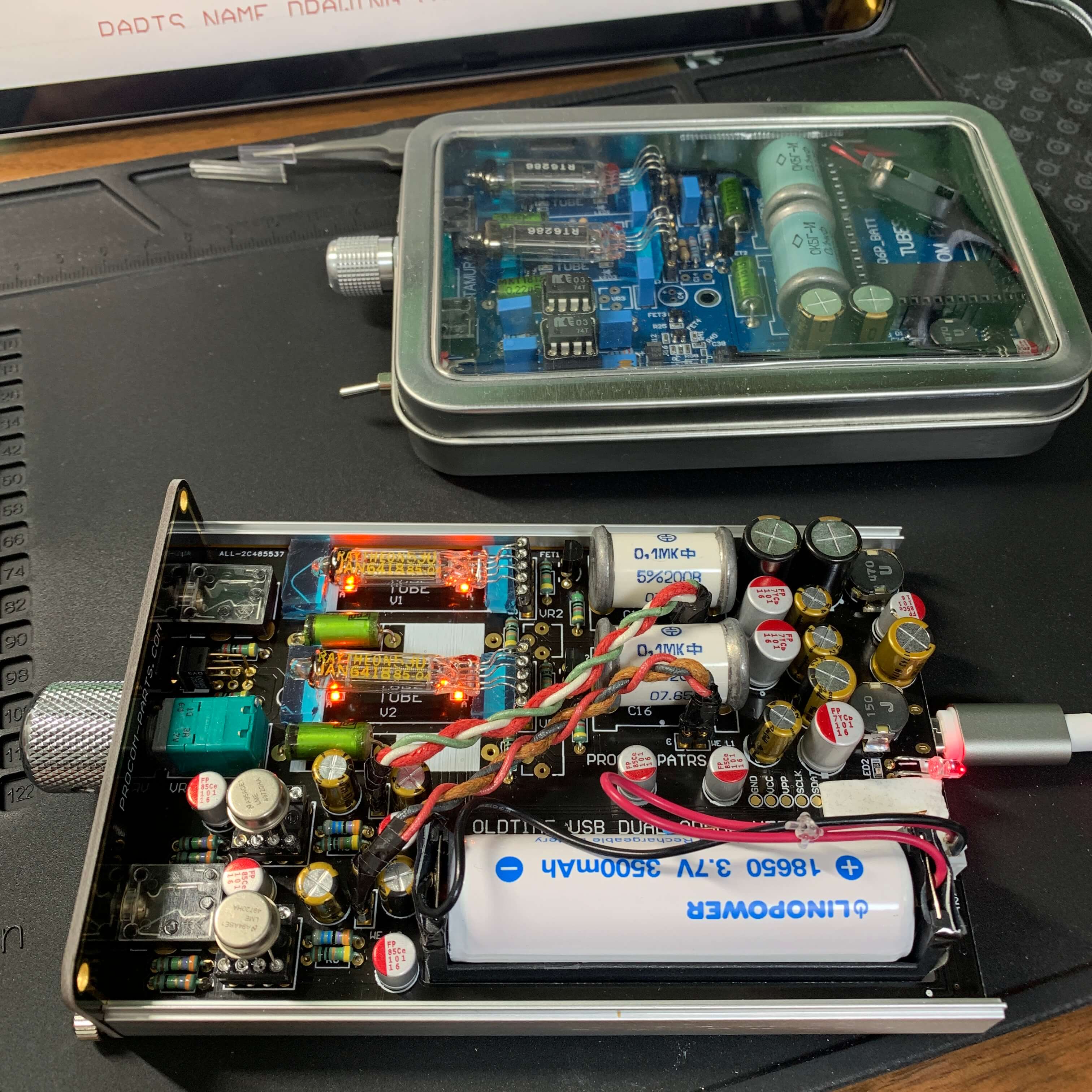 組み立てながら色々勉強させていただきました。そしてこの二台を制作することでポータブル真空管アンプのスタートラインに辿り着くことができたので、これから色々と勉強して覚えていきたいと思います。