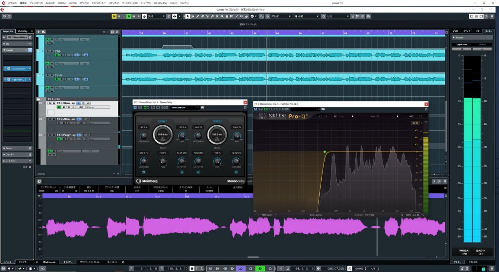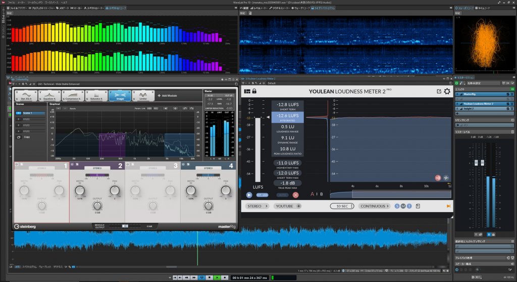Cubaseでミックスダウンした音源の主にレベル調整はWaveLabで行っています。Youtubeにアップする場合は最終的にYOULEAN LOUDNESS METER2で-12.6LUFS、WabeLabの解析でショートタームラウドネス最大値-10LUFS辺りに合わせてマスタリングをしています。
