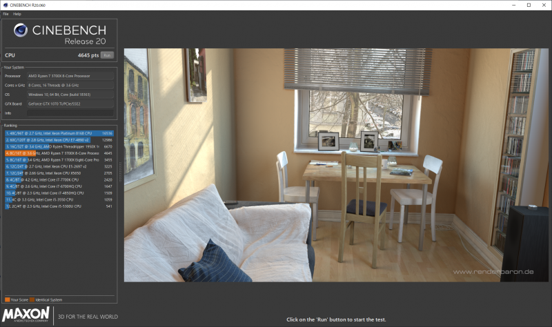 別環境のCore i7 8086k(6コア・12スレッド/3.40GHz/TDP95w)では3330ptsでしたので8コアの効果もよく出ています。また、IntelでTDP65WのCPUを選択するとCore i5-8500(6コア・6スレッド/3.00GHz)まで性能が落ちてしまいますので、コスト、性能、温度的にRyzen7はかなりお勧めです。