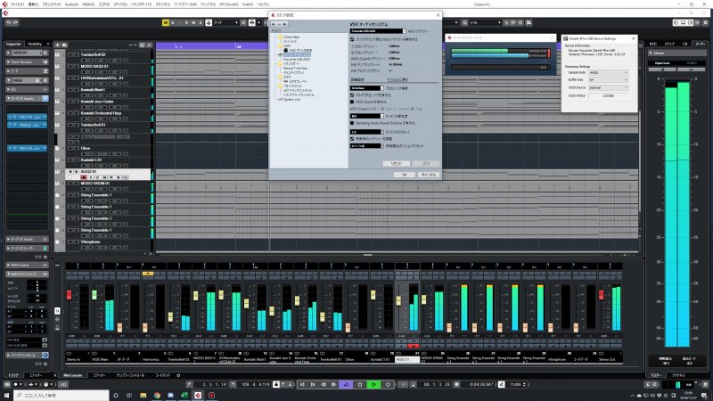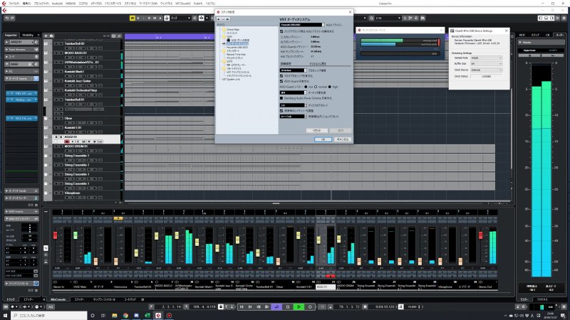 Cubase Pro 10.5で、Kontact音源を複数入れて、MODO DRUM、MODO BASS等々を入れて、ループさせながらClarett4PreのBuffer Sizeを変えたりASIO-GuardをON:OFFしたりと無茶してみましたが落ちたり固まったりすることも無く、スムーズに動いてます