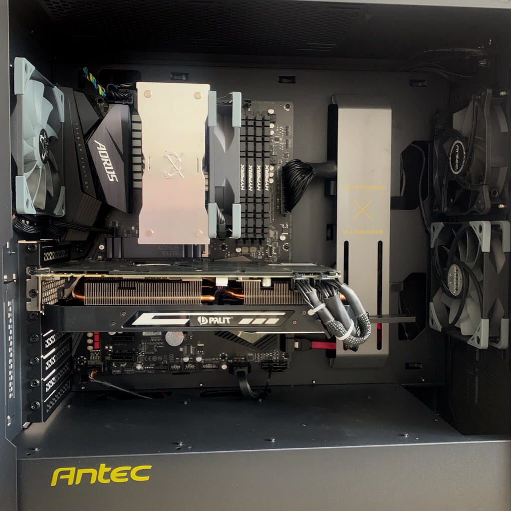 ANTECのこのケース。価格は8,300円でお安めでしたが作りは良く、パネルにも遮音材が入っていてかなり静かです。ほぼ無音の環境が作れたのでちょっと感動しました。