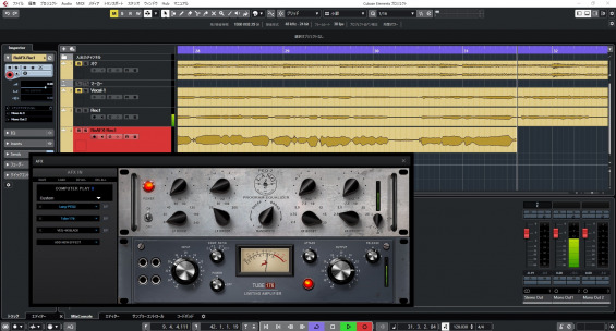 ハイレゾ音源を再生し、コンソールでGYRATEC X(真空管ステレオコンプ)を掛けてモニターに出力する。