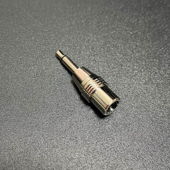 ピンプラグ/RCA(メス) →3.5mm モノラルミニプラグ(オス) 変換アダプタ PLG-N8(545円)というものを使いました。F-Factoryとなっていますが富士パーツ商会ですかね。関係が良く判りませんが。